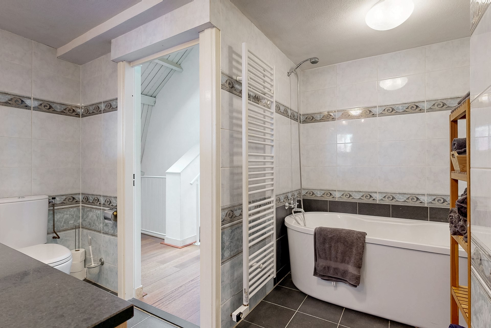 | Badkamervoorzieningen | Dubbele wastafel, Inloopdouche, Ligbad, Toilet |