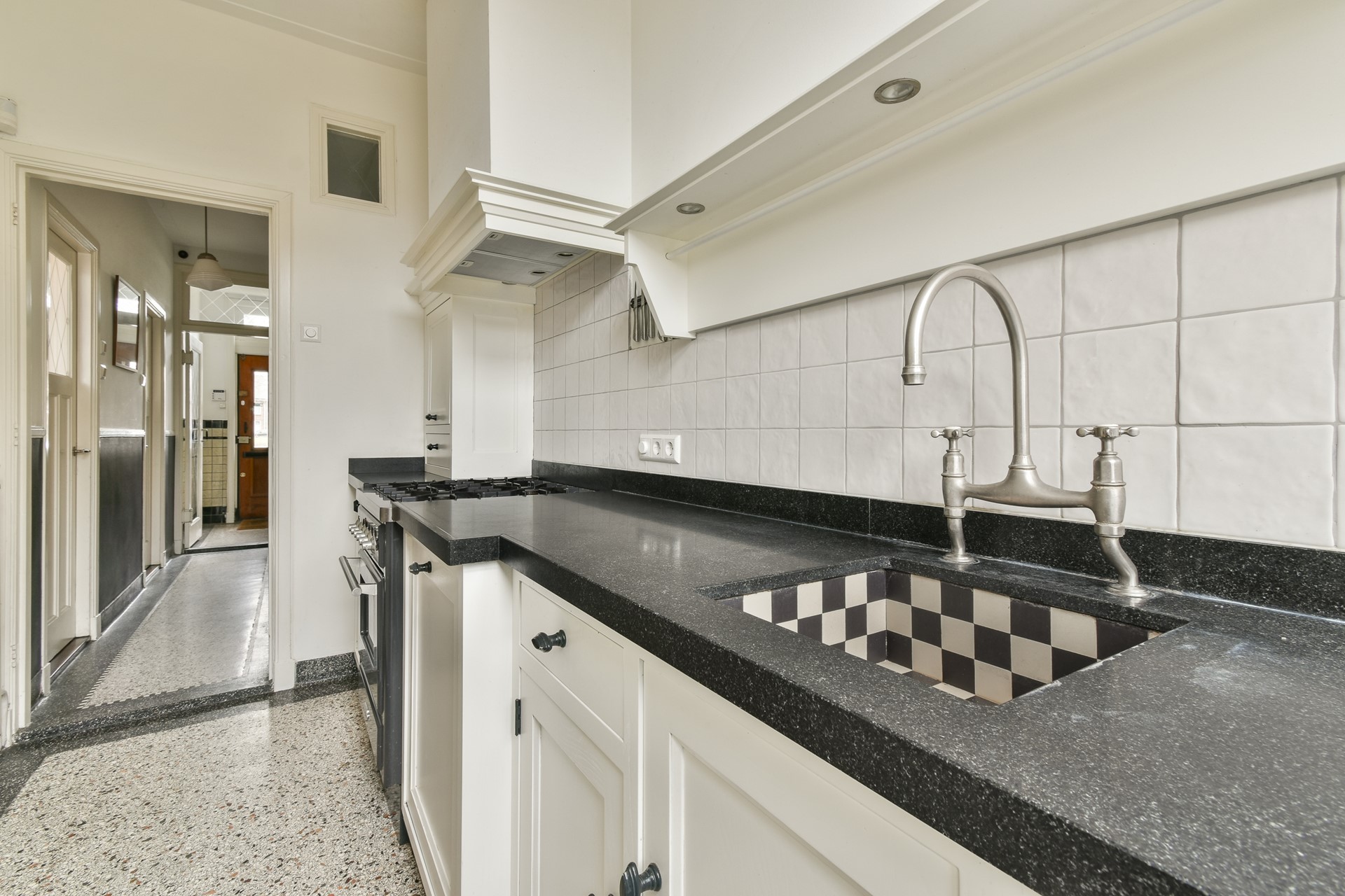 De woning beschikt over maar liefst vijf volwaardige slaapkamers en een werk/studeerkamer die desgewenst kan worden omgebouwd tot tot een zesde slaapkamer, wat het huis uitermate geschikt maakt voor grote gezinnen, thuiswerken of logees. Daarnaast zijn er twee moderne badkamers, stijlvol uitgevoerd en voorzien van alle comfort. De klassiek uitgevoerde maatwerkkeuken is voorzien van een granieten werkblad en een gootsteen met zwart-wit mozaïektegels.