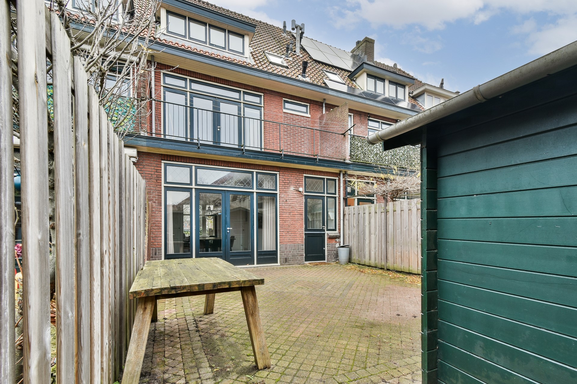 Zowel aan de voor- als achterzijde beschikt de woning over buitenruimte. De voortuin biedt privacy en een vriendelijke uitstraling aan de straatzijde en ruimte voor het stallen van fietsen. De ruime achtertuin met schuur is zonnig gelegen en biedt tot laat in de avond zon, ideaal voor lange zomeravonden, spelende kinderen of ontspannen borrels.