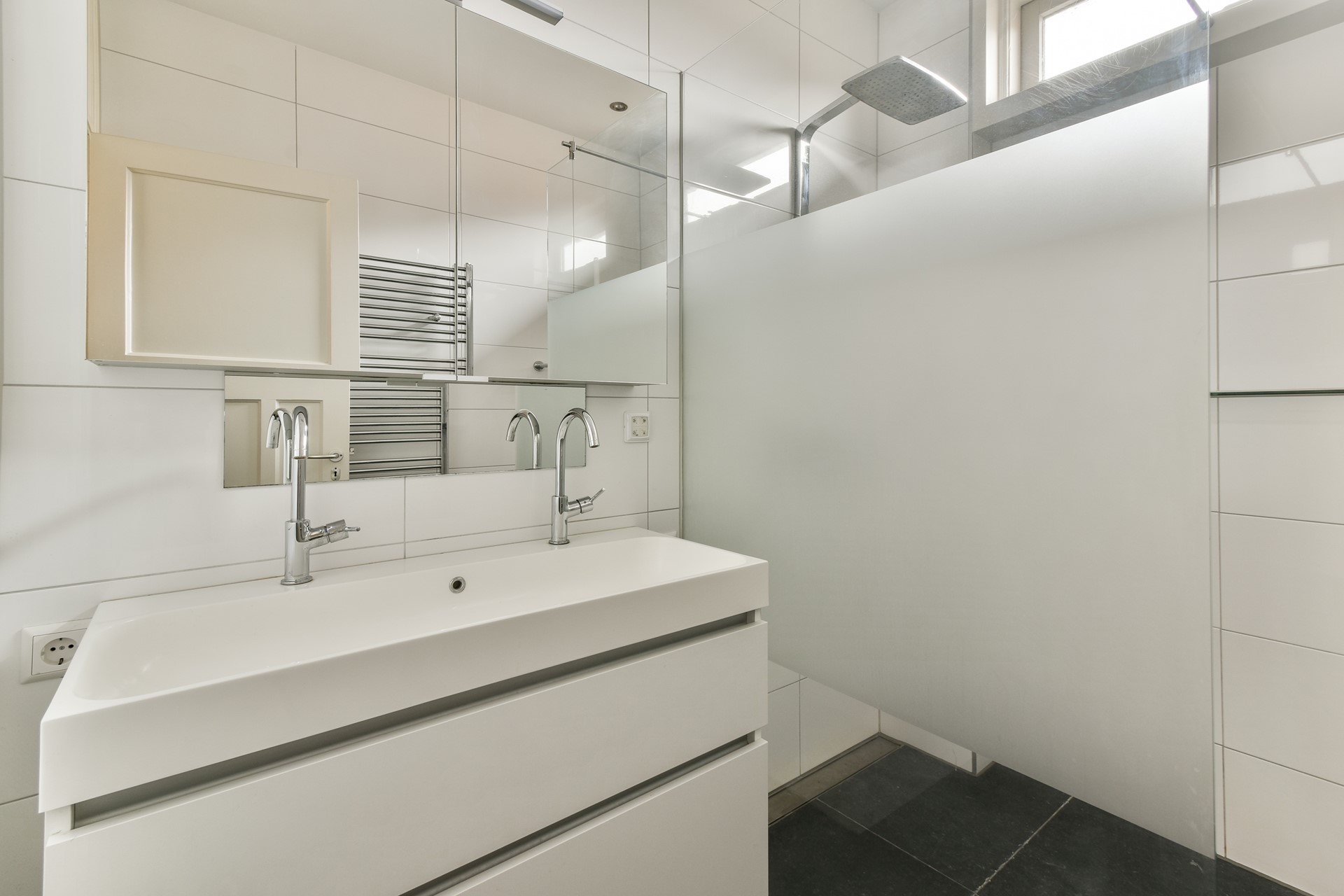 | Badkamervoorzieningen Badkamer 1 | Dubbele wastafel, Inloopdouche |