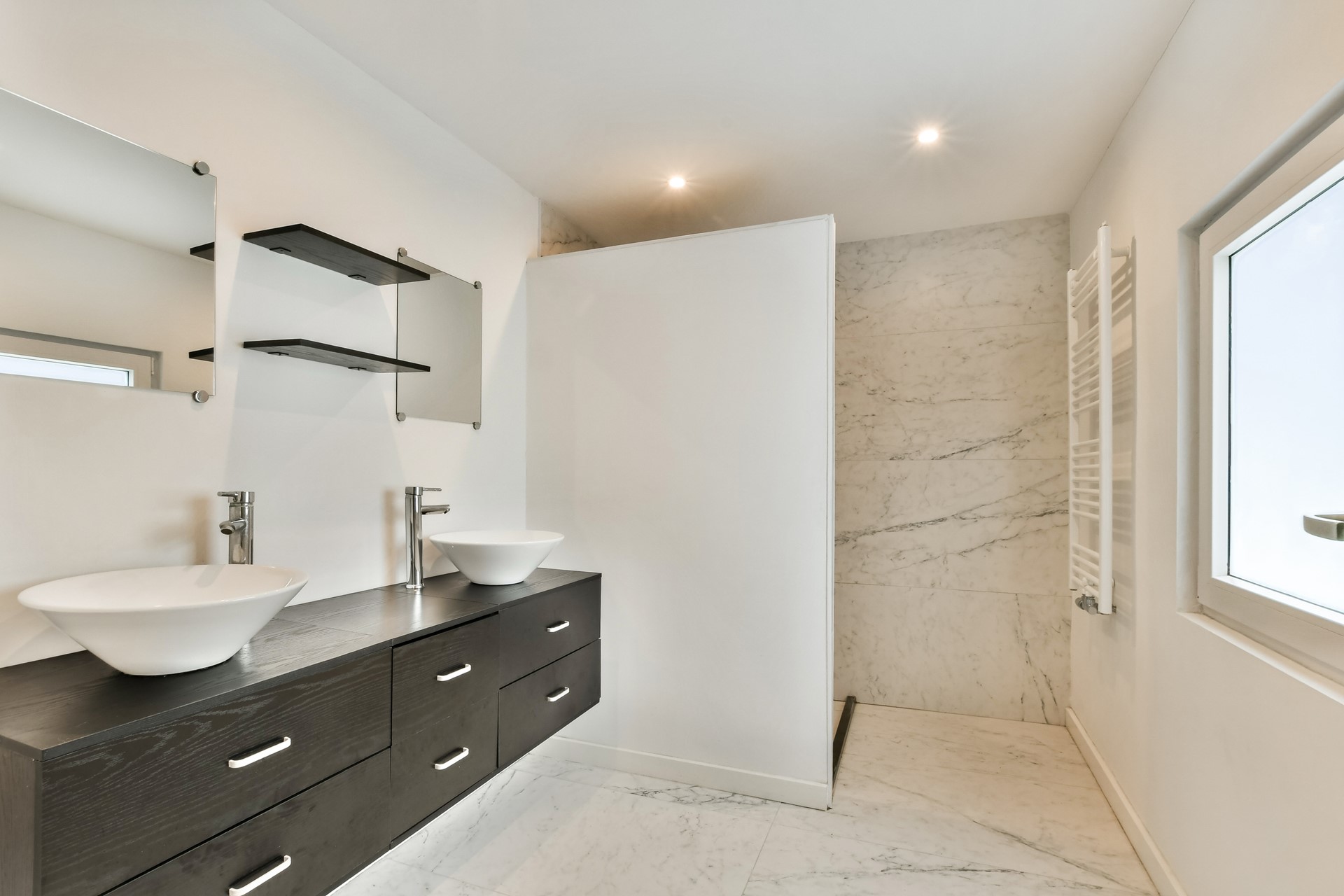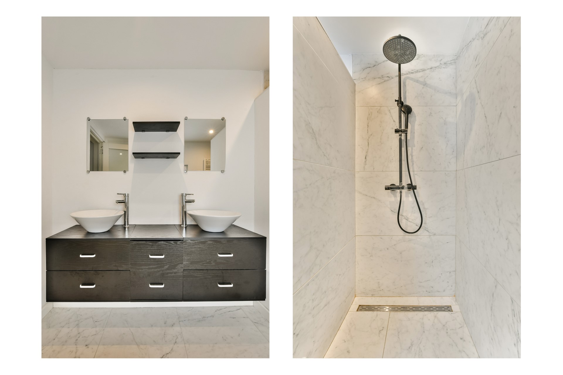 | Badkamervoorzieningen | Dubbele wastafel, Inloopdouche |