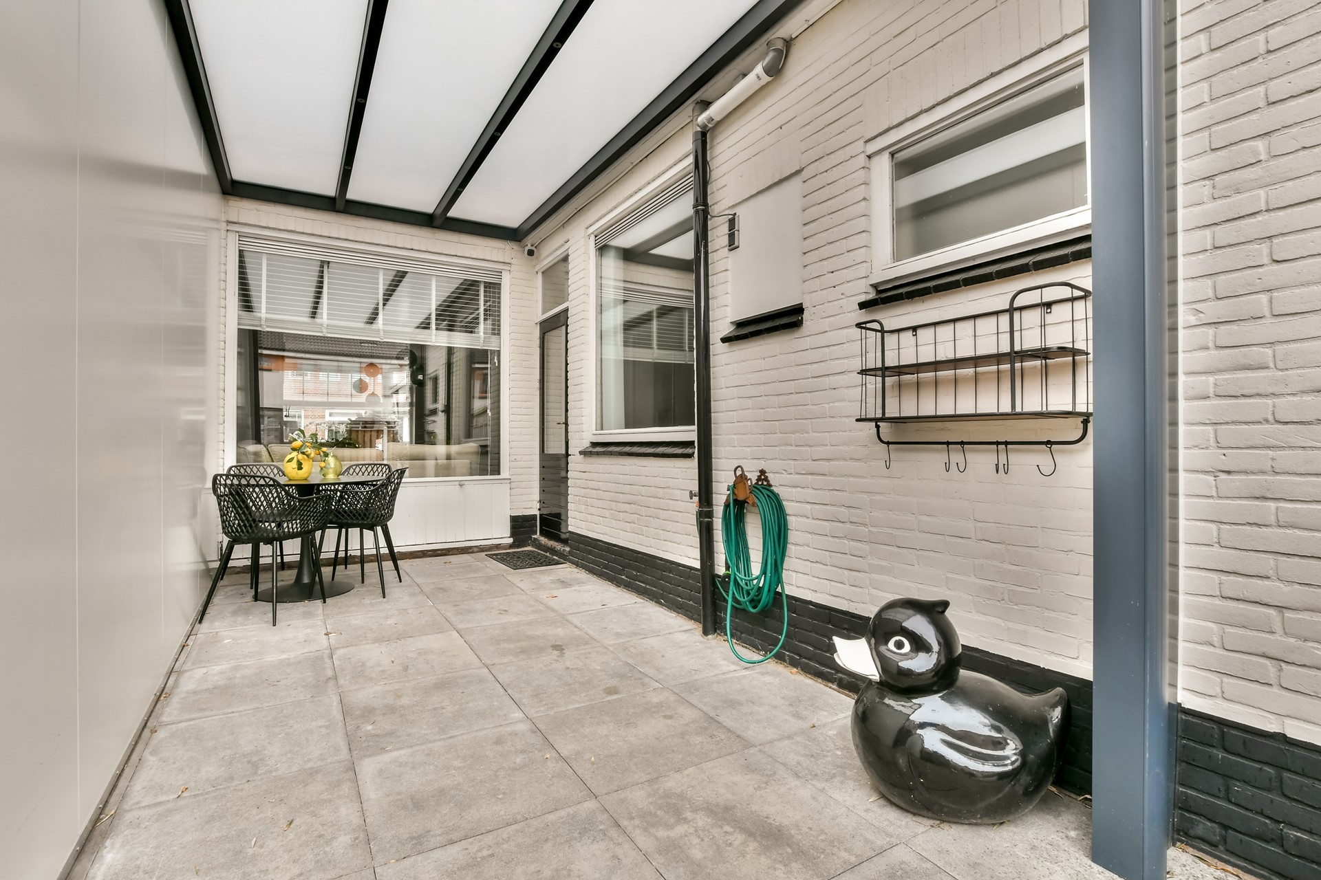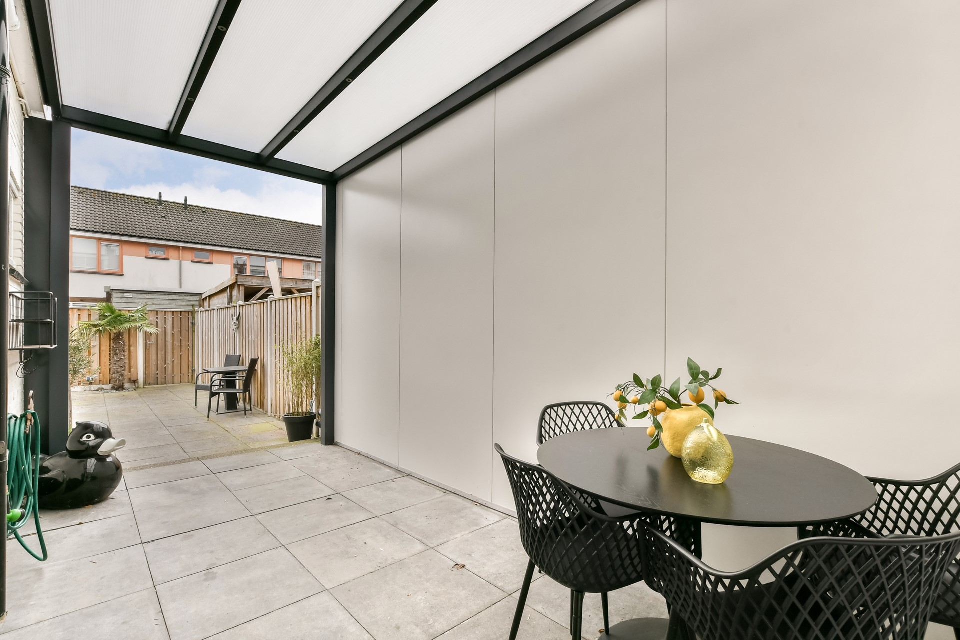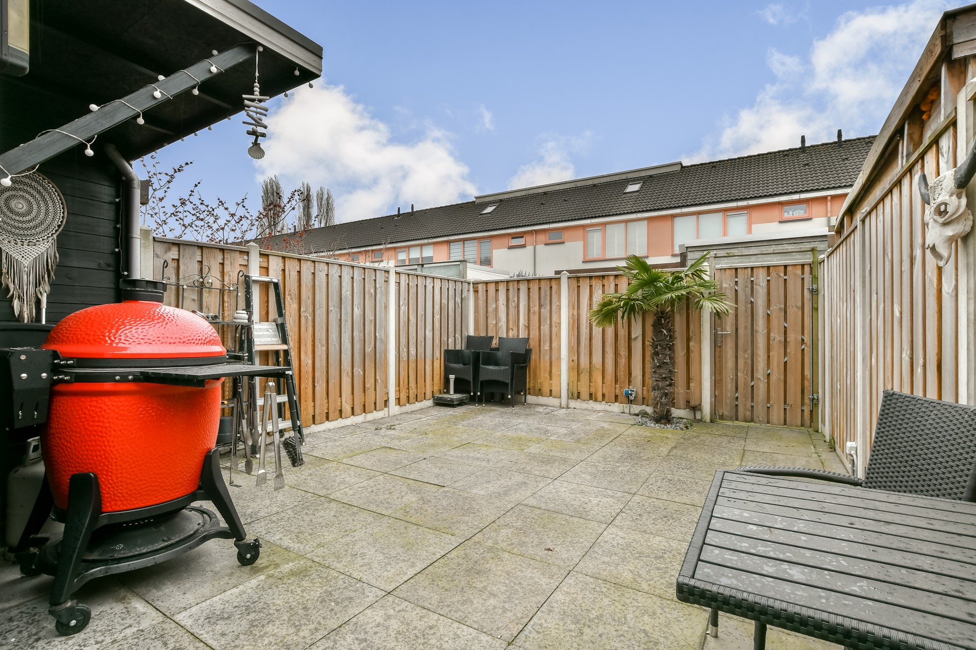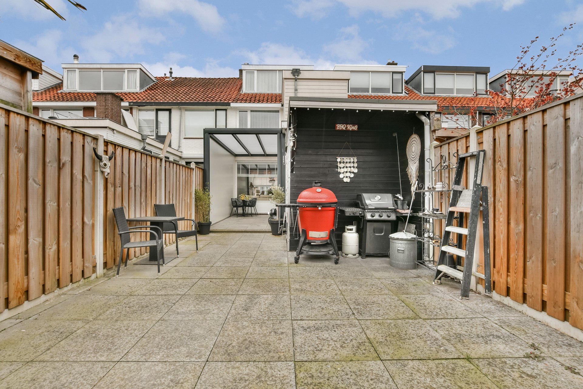 De lichte woonkamer vormt het hart van het huis en sluit mooi aan op de zonnige achtertuin. De ruime tuin is voorzien van een berging en praktische achterom, ideaal voor fietsen of tuinaccessoires.